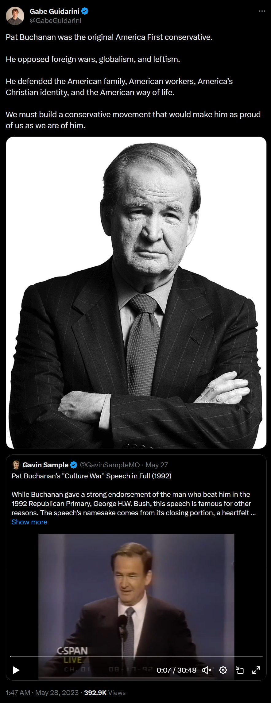 Many of this faction’s planks trace back to Pat Buchanan’s presidential candidacies in the 90’s. Buchanan pioneered the paleoconservative themes of non-interventionism coupled with reactionary social policy and legal immigration restriction proposals. In 2015, Trump’s presidential candidacy in many ways revived this ideology, and helped to bring it into the limelight. Today, Fox News host Tucker Carlson is the most mainstream promoter of this ideology with 3 million nightly viewers. Individual National Conservative figures range from DC policy wonks like Oren Cass, to hardline activists like Nick Fuentes.